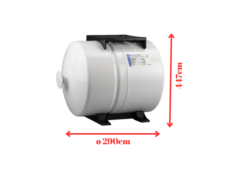 Measuring 44.7 cm in height and 29 cm in diameter, this tank can be easily positioned under the kitchen sink or in tight spaces thanks to its compact design. Its durable metal body offers high resistance to external factors, ensuring long-lasting and safe use.